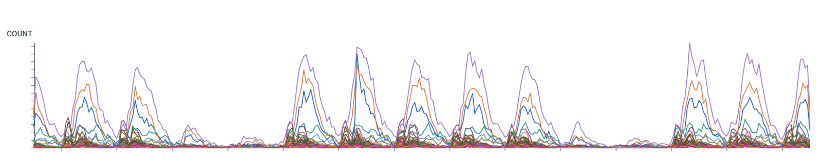 Figure 1: Legitimate human traffic follows a set pattern that is inextricably linked to human behavior relating to work, leisure, and sleeping habits.