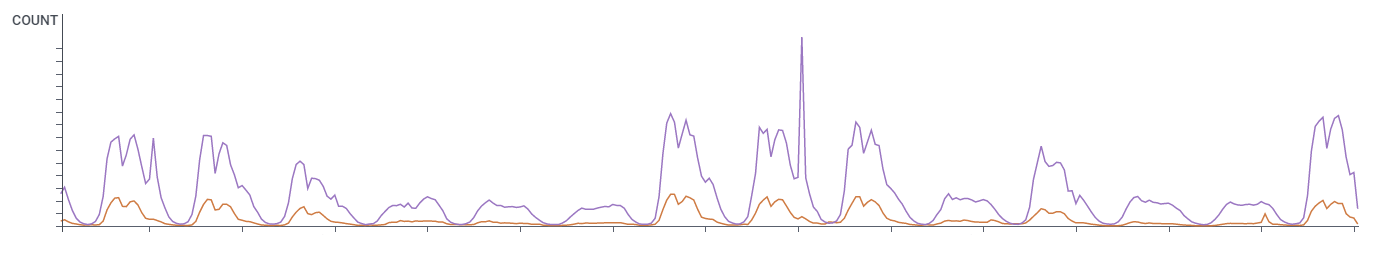 Figure 3: Pronounced anomalies, such as the sharp spikes could result from a sale, a promotional campaign, or  some other genuine business event. They could also indicate an automated attack.